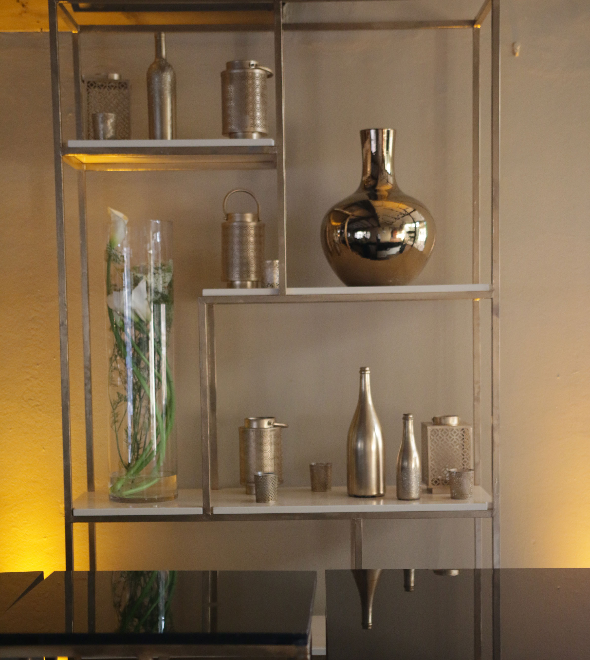 Meuble de rangement type bibliothèque pouvant servir d’éléments de décoration ou d’arrière bar. Il est conseiller de l’agrémenter avec divers accessoires de décorations tels que photophores, vases, chandeliers, fleurs…