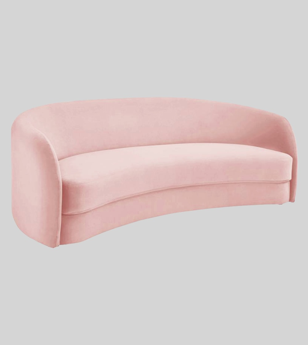 STRUCTURE EN BOIS ROUGE REMBOURRÉE, TAPISSERIE EN VELOUR COULEUR ROSE POUDRÉ