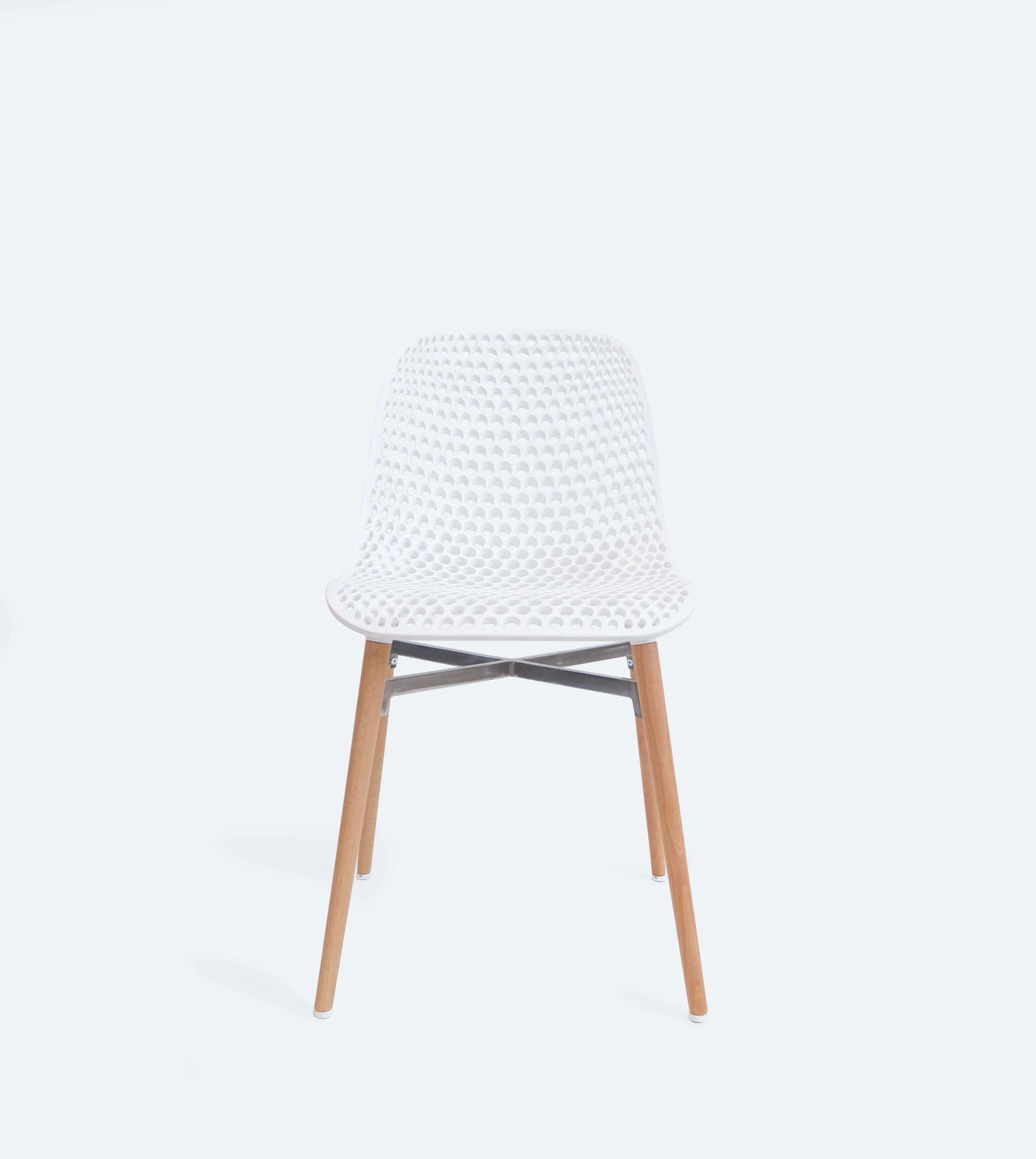 COQUE EN POLYCARBONATE BLANC / SUPPORT EN ALUMINIUM / PIEDS EN HÊTRE MASSIF NATUREL