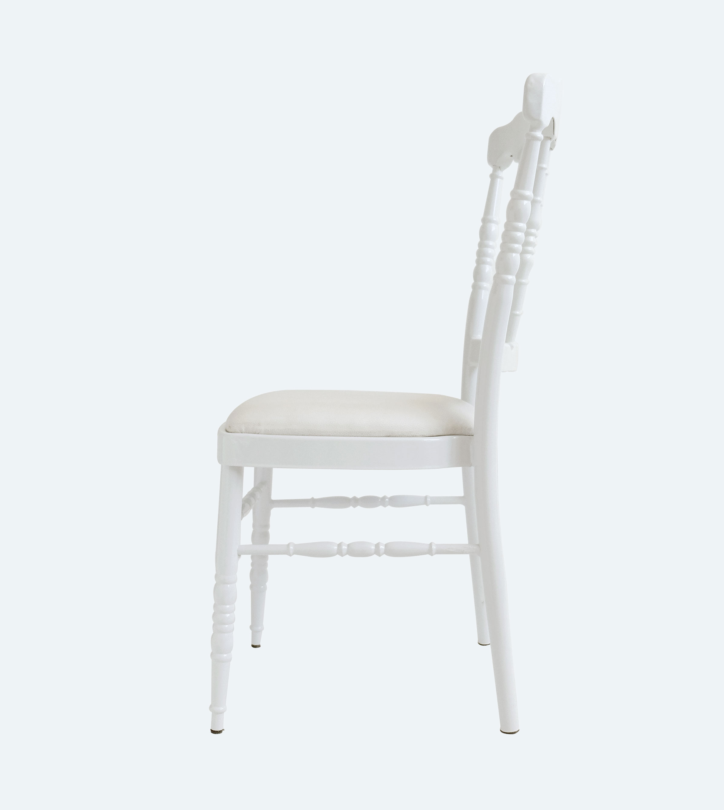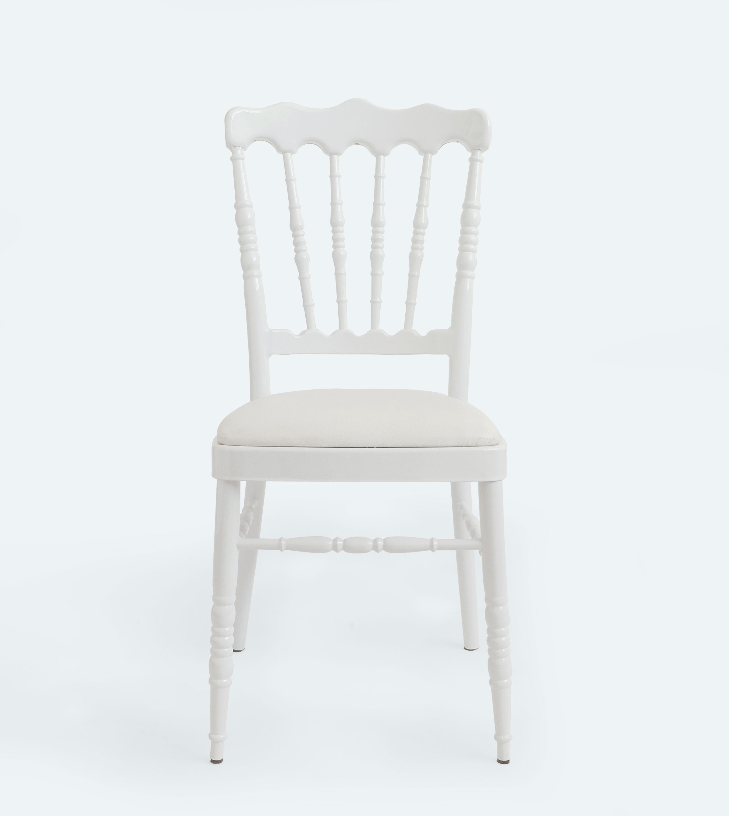 Chaise blanche, confortable, parfaite pour les signatures de contrat, marches nuptiale, diners de mariage.
