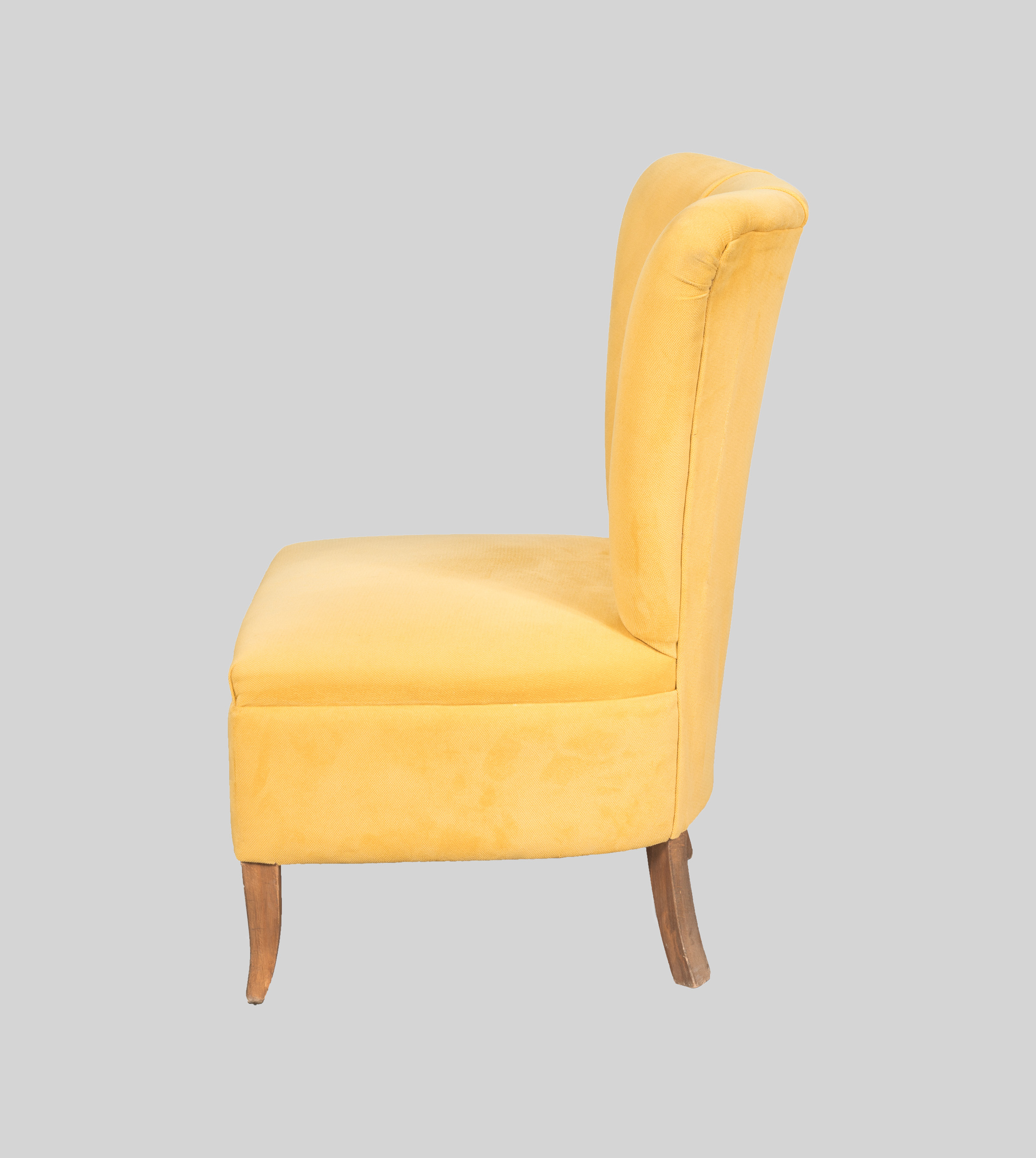 FAUTEUIL TRES CONFORTABLE EN VELOUR DE LA COLLECTION COSY, COULEUR MOUTARDE S’ASSOSIANT PARFAITEMENT AVEC LES COULEURS BEIGES ET VERT; COSY EN INTERIEUR ET FUN EN EXTERIEUR.