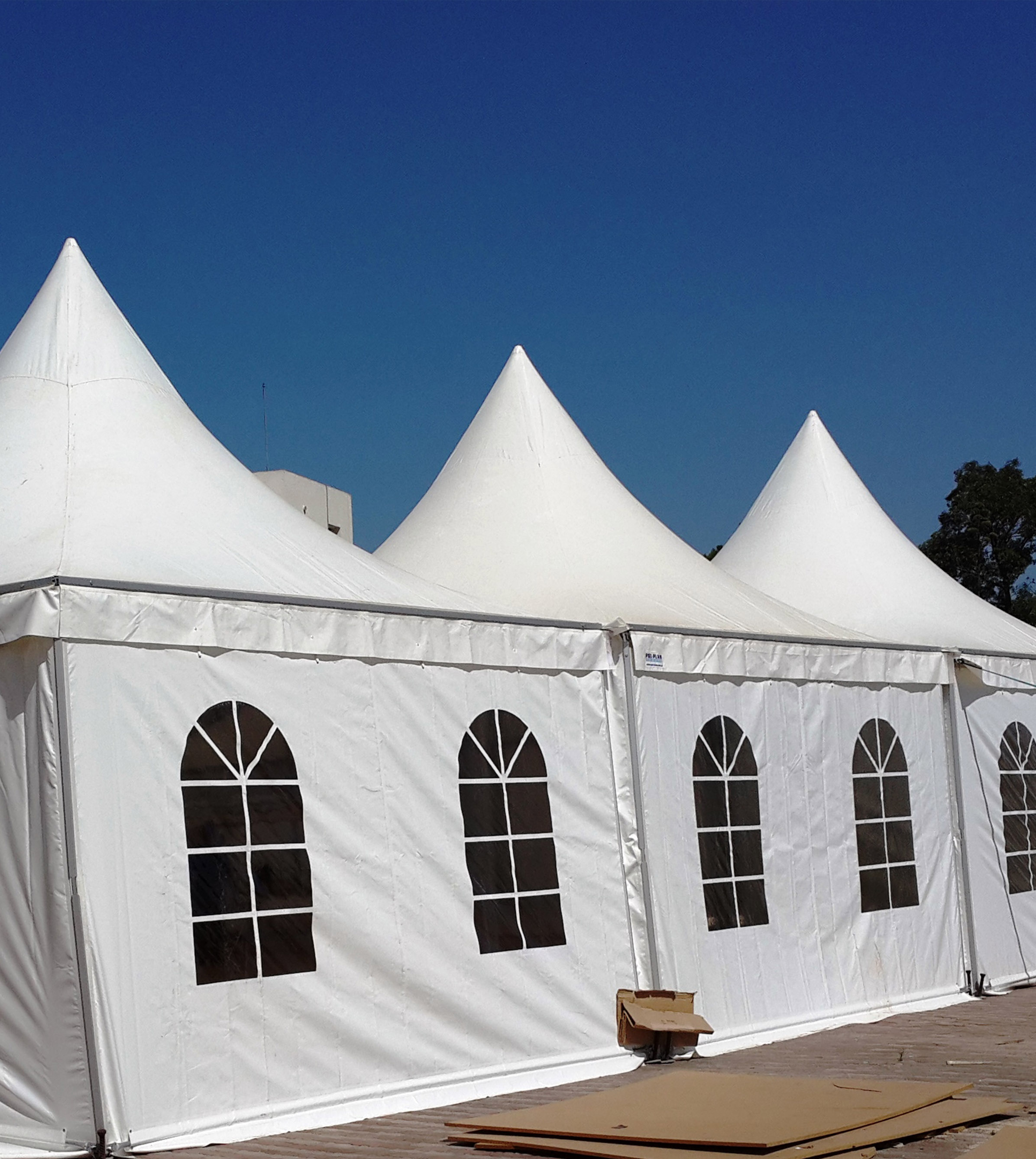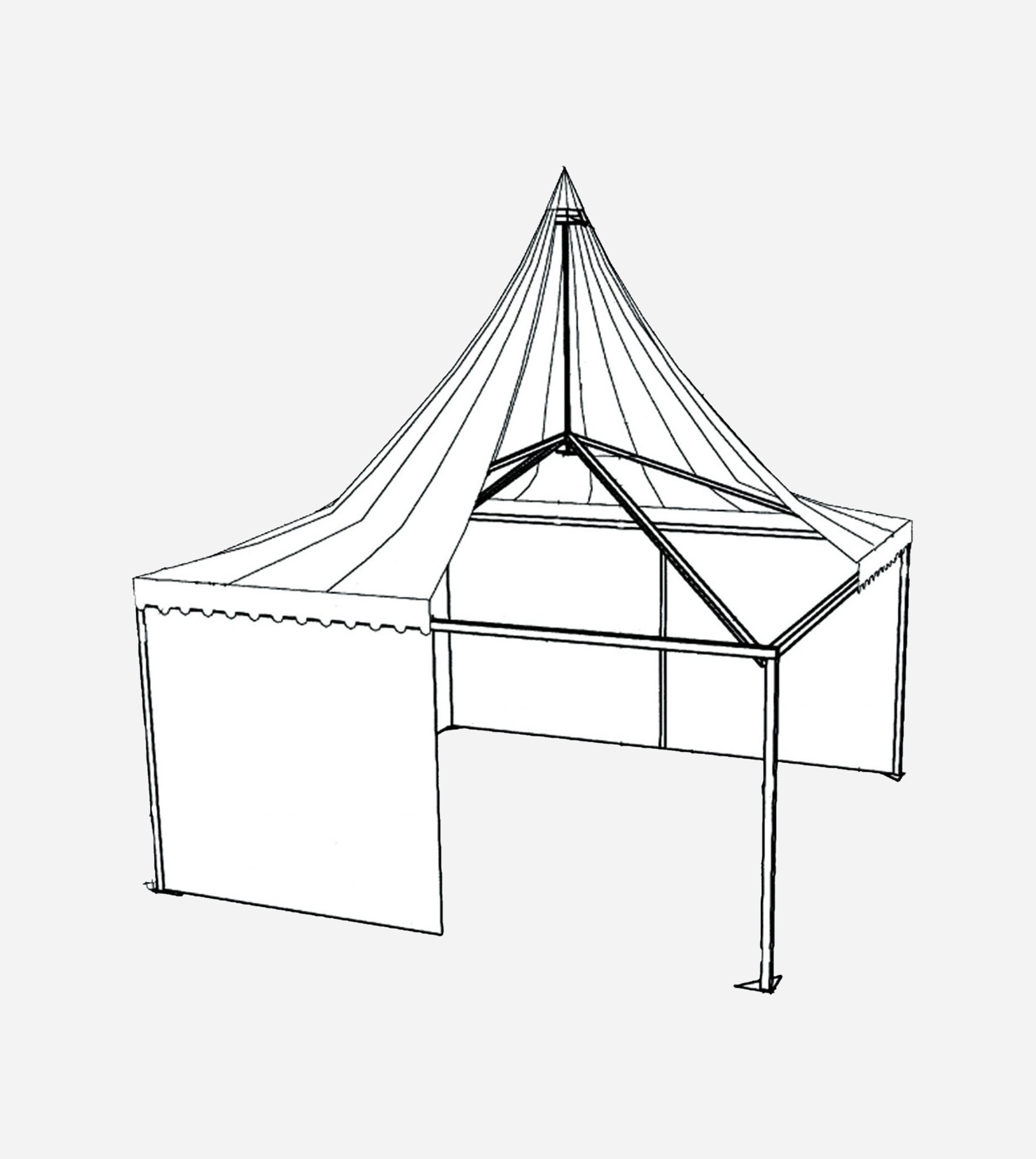 TENTE 5x5m EN FORME DE PAGODE / STRUCUTRE ALUMINIUM / BÂCHE BLANCHE