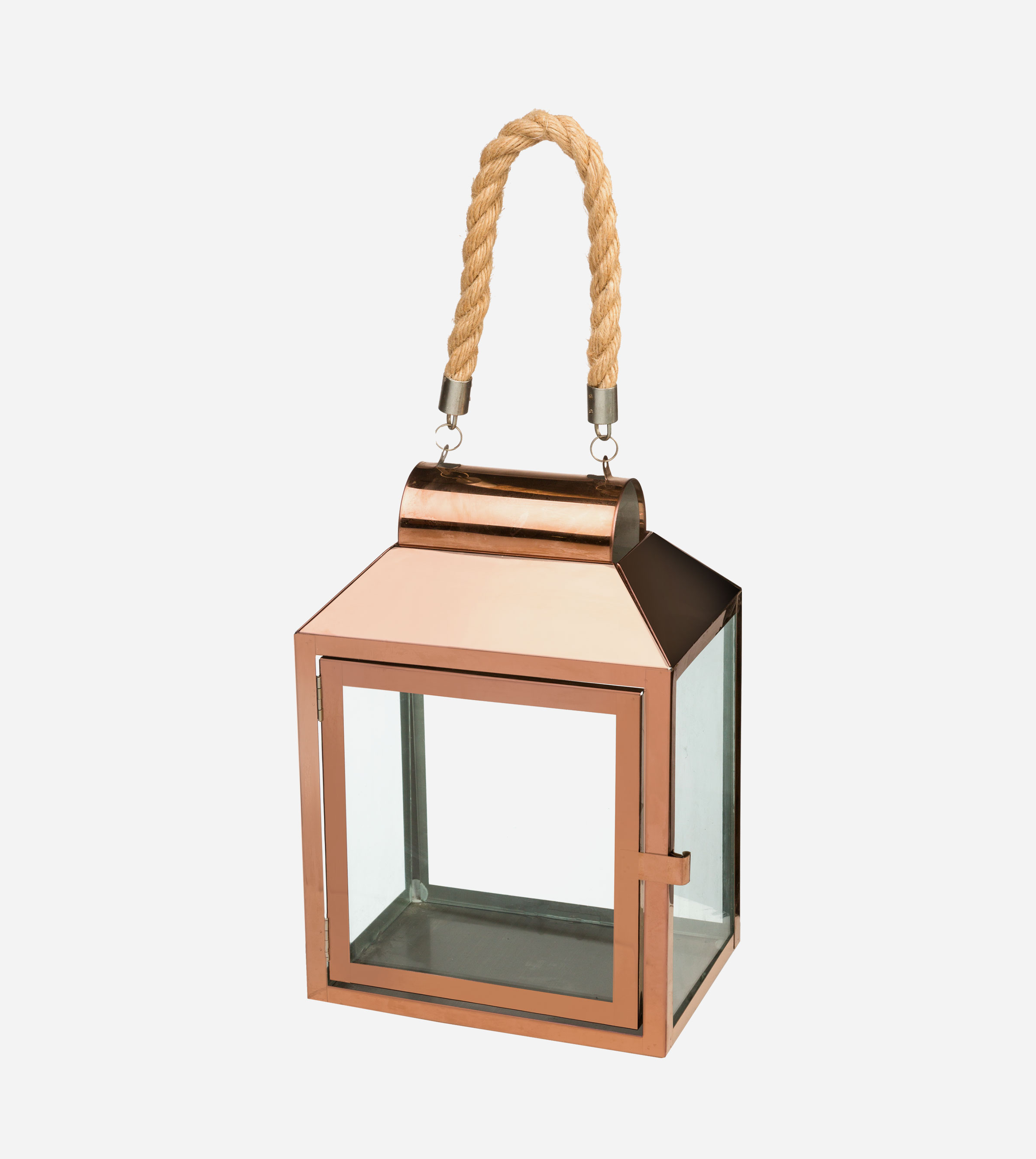 PHOTOPHORE FORMÉ D’UN CADRE EN CUIVRE ET D’UNE ANCE EN CORDE
