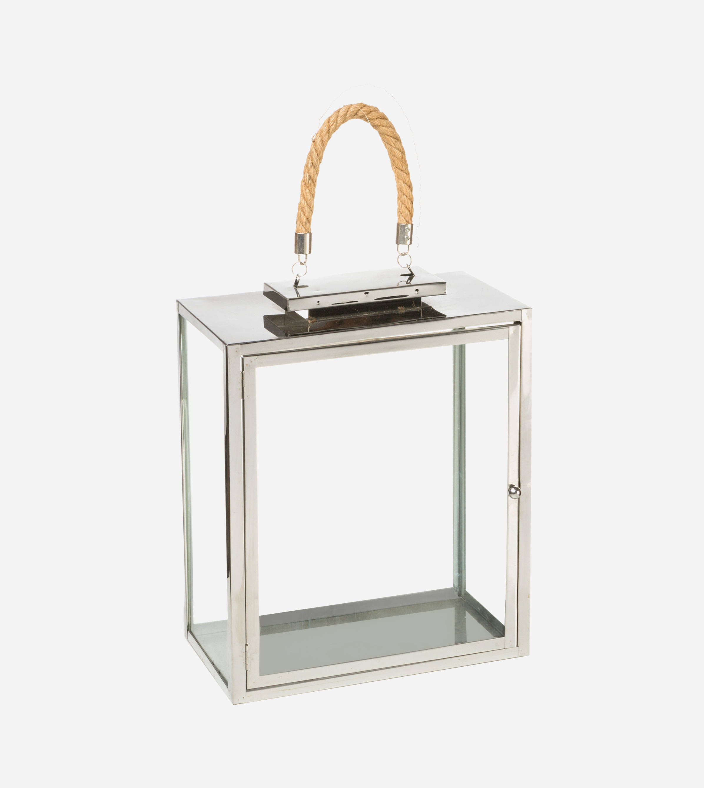 PHOTOPHORE FORMÉ D’UN CADRE MÉTALLIQUE ARGENTÉ ET D’UNE ANCE EN CORDE
