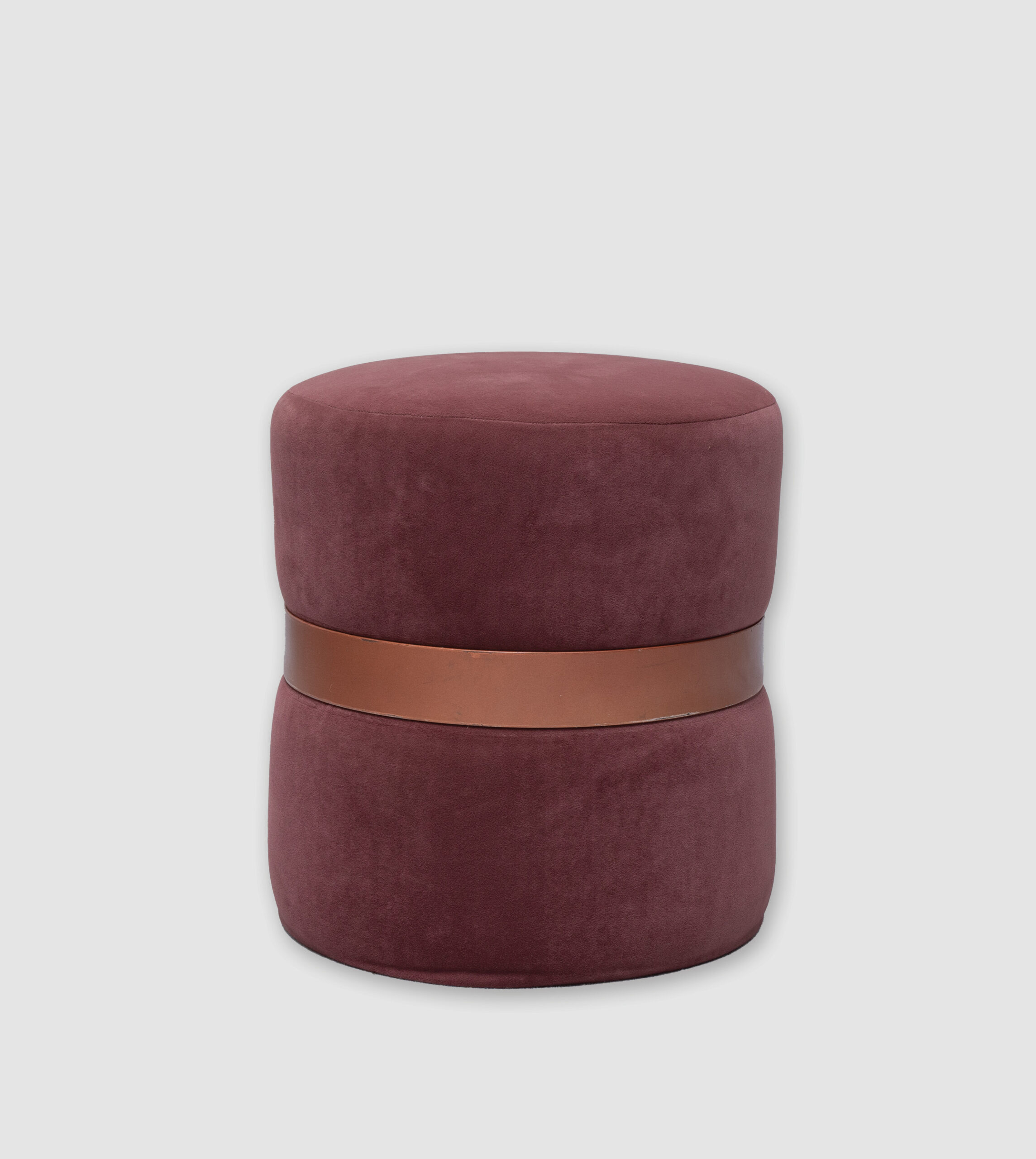 POUF EN VELOUR COULEUR POURPRE, S’ASSOCIANT PARFAITEMENT AVEC LES FAUTEUILS ET CANAPÉS DE LA COLLECTION BUBBLE