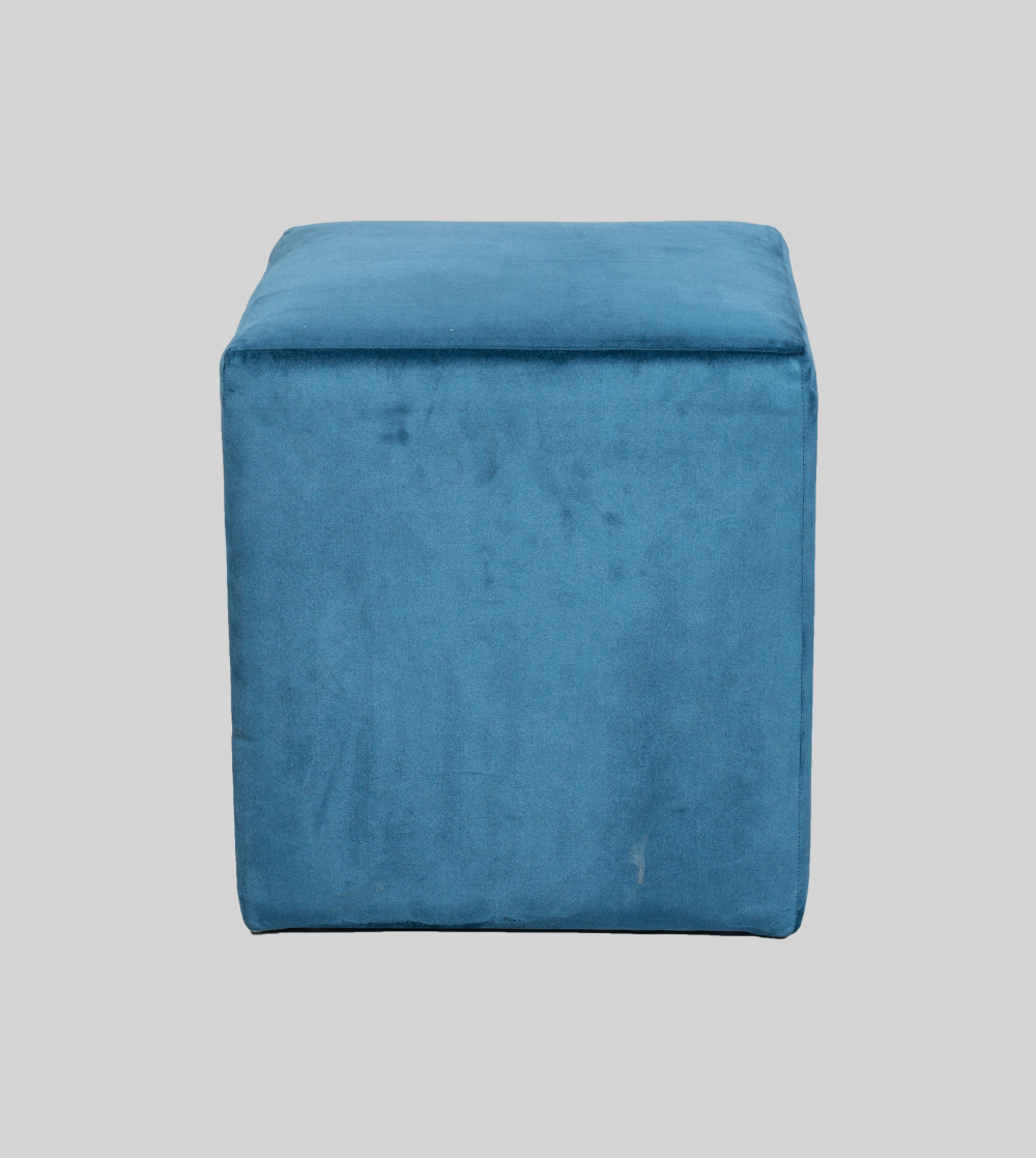 CUBE EN BOIS MASSIF HABILLÉE EN VELOUR BLEU