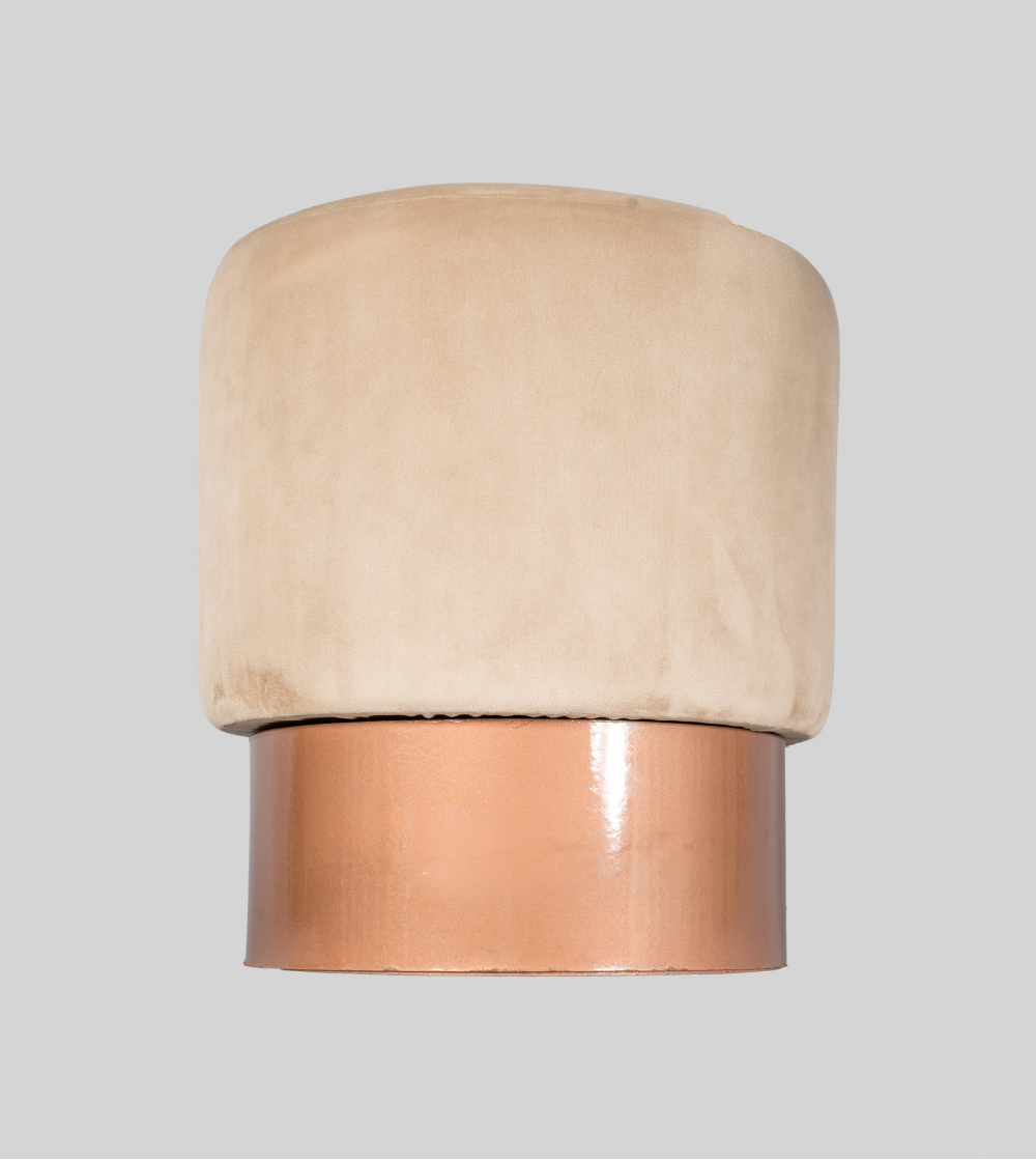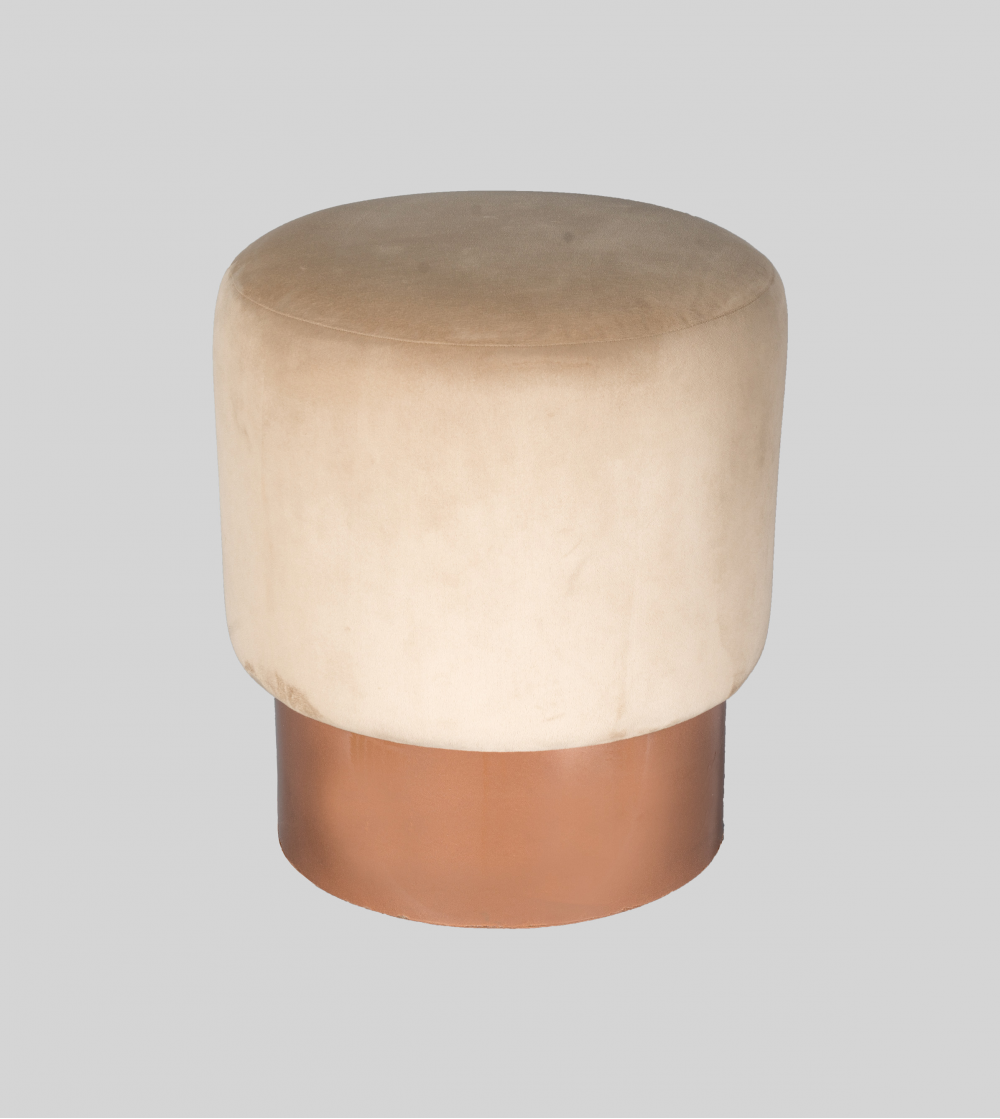 POUF ROND SANS DOSSIER / STRUCTURE EN BOIS TAPISSÉ DE VELOUR BEIGE
