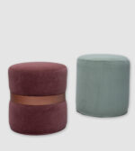POUF EN VELOUR VERT GLAUQUE, S’ASSOCIANT PARFAITEMENT AVEC LES FAUTEUILS ET CANAPÉS DE LA COLLECTION BUBBLE
