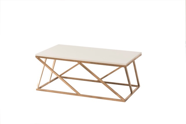 TABLE BASSE RECTANGULAIRE / SOCLE FER FORGER BRONZE / PLATEAU RECTANGULAIRE EN MAXIGLOSS