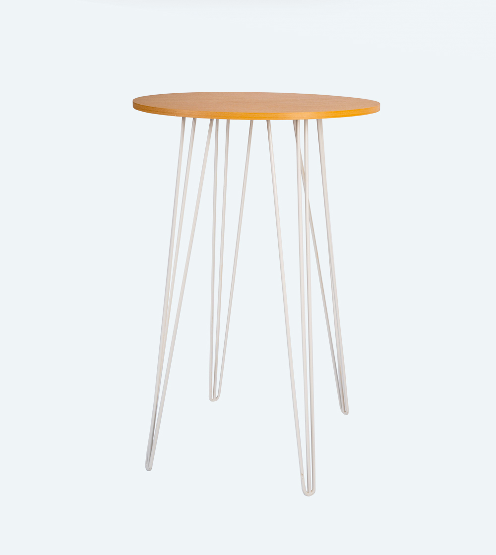 PLATEAU ROND EN MDF STARTIFIÉ, STRUCTURE EN ACIER BLANC