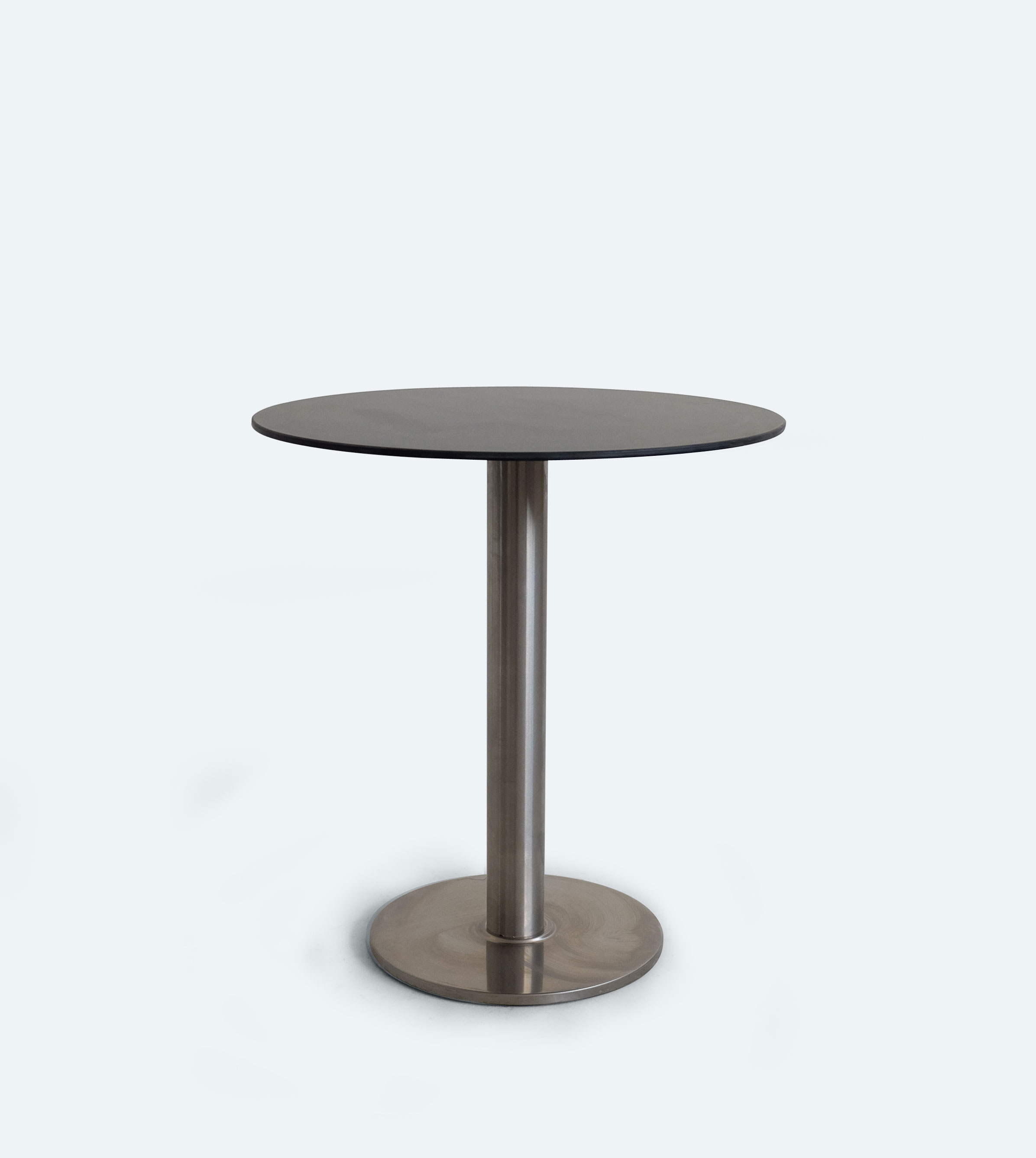TABLE DE REUNION RONDE / PIED INOX / PLATEAU FIN NOIR