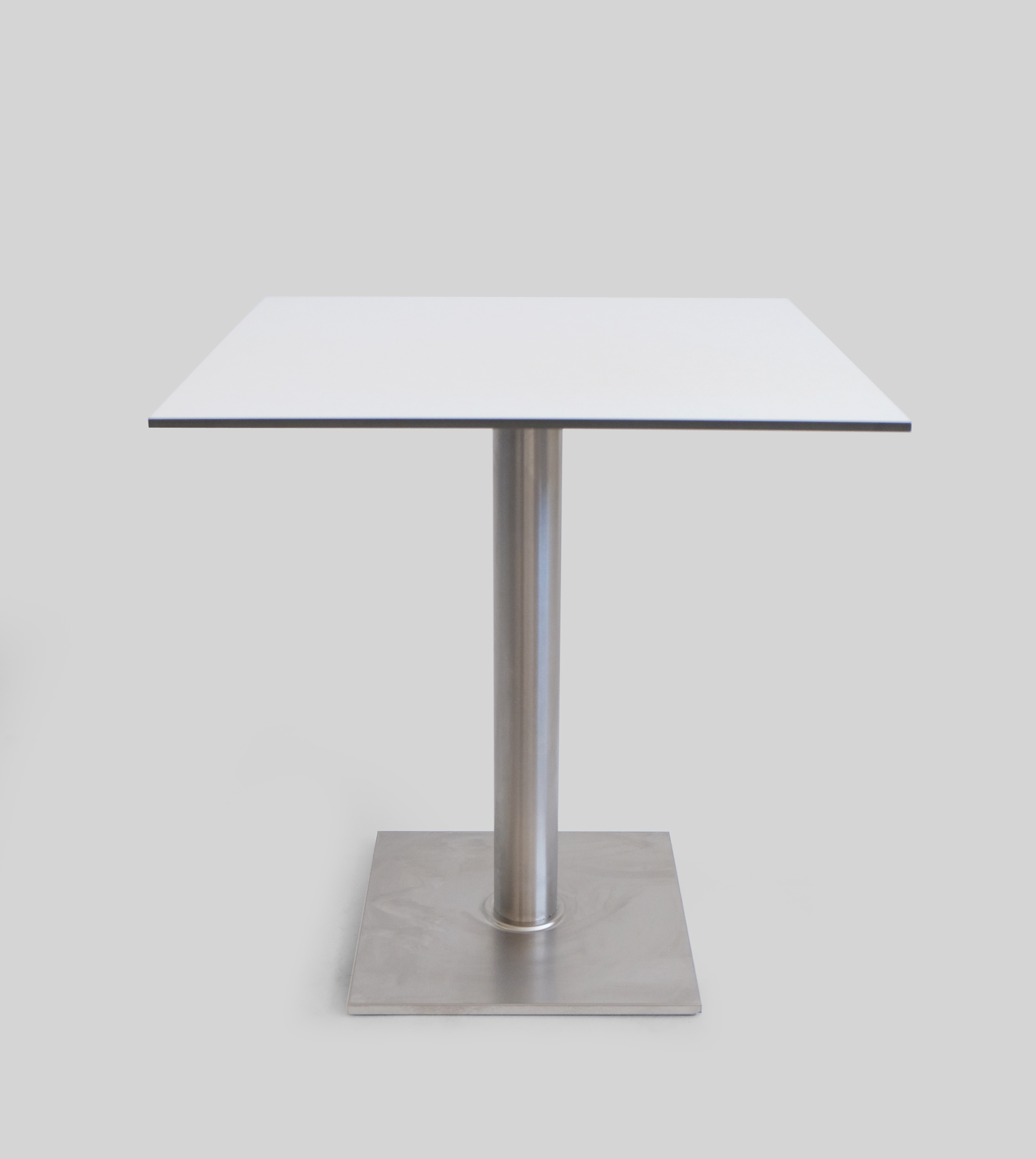 TABLE DE REUNION CARRE / PIED INOX / PLATEAU FIN BLANC