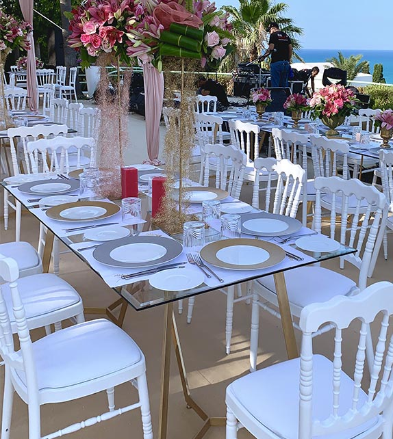 Organisez vos événements sans stress. Réservez en ligne tout le mobilier et la décoration dont vous avez besoin, en quelques clics